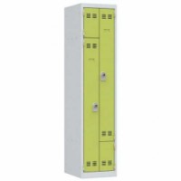 Svařovaná šatní skříň Vinco se zvýšenou bezpečností k uložení osobních věcí. Každý oddíl obsahuje tyč na oděvy, dva háčky a samostatnou přihrádku. Uzamykání trojbodovým systémem s otočným uzávěrem na visací zámek (není součástí dodávky). Ventilace ve dveřích, možnost umístění štítku se jménem.Svařované šatní skříně Vinco, dveře Z, 2 oddíly, otočný uzávěr
