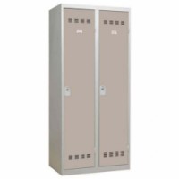Šatní skříň svařovaná z ocelového plechu tloušťky 0,7 mm. Každý oddíl je vertikálně rozdělen mezistěnou umožňující odložení čistých a špinavých oděvů. Každý oddíl je vybaven tyčí na ramínka a dvěma háčky. Uzamykání jednobodovým cylindrickým zámkem se dvěma klíči. Perforovaná dvířka zajišťují účinné odvětrávání vnitřního prostoru, možnost umístění štítku se jménem.Svařované šatní skříně Vinco s mezistěnou, 2 oddíly, 400 mm, cylindrický zámek