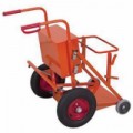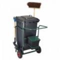 Úklidový vozík do venkovních prostor se svařovanou ocelovou konstrukcí. Uzamykatelná přihrádka z ocelového plechu. Držák na pytle na odpadky a další držáky na úklidové pomůcky. 2 madla s ochranou. Pojízdnost zajišťují 2 pneumatiky na ocelovém ráfku s kuličkovými ložisky, a dvě kola z termoplastické pryže na plastovém ráfku s kuličkovými ložisky.Venkovní úklidový vozík s uzamykatelnou přihrádkou