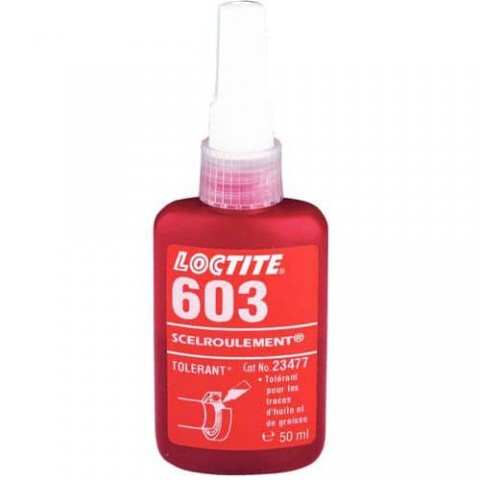 Pro odnímatelné a opakovaně použitelné díly. Pryskyřice odolná vůči olejům. Omezuje deformaci ložiska a kroužku.Upevňovač spojů Loctite Scelroulement 603, 50 ml