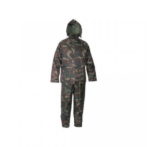 Voděodolný oblek, kalhoty v pase do gumy, blůza 3/4 s kapucí v límci, zapínaní na zip, nižší hmotnost, v praktickém balení. Velikost: M-XXXXL Normy: EN 340 Materiálové složení: 60% polyester, 40% PVC Barva: maskáčováVoděodolný oblek PROFI, maskáčový
