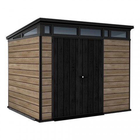 Plastový zahradní domek Horizontal ve světle hnědé barvě je bezúdržbový a je vyroben z jedinečného materiálu Decocoat, který je inspirován moderním vzhledem v imitaci dřeva. Robustní konstrukce s dvojitými stěnami a kovovými výztuhami. Pevná střecha, široké dvojité dveře a podlaha pro náročné použití s nosností 150 kg na m2. Domek je velmi stabilní díky zpevněné ocelové konstrukci. Vhodný pro uschovávání nářadí a zahradních doplňků, ale také na sekačku nebo grill. Zatížení střechy až 150 kg/m2 a odolnost vůči větru do 145 km/hod (platí v případě ukotvení). Rozměr dveří: 140 x 182 cm. Mezi další výhody se řadí okna, světlíky, vysoká podlaha a zajišťovací systém.Zahradní domek Horizontal 9 x 7, světle hnědý