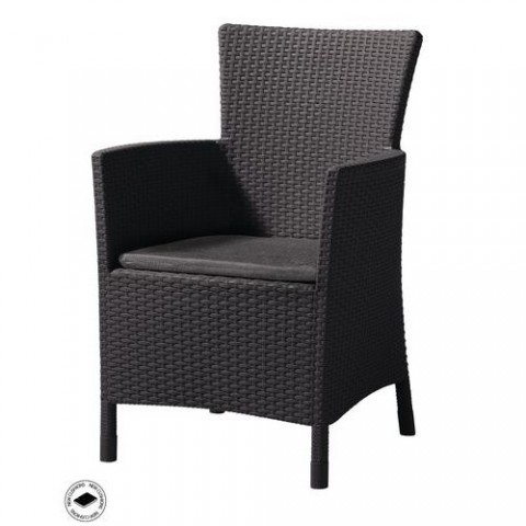 Elegantní pohodlné křeslo na terasu, pergolu a zahradu. Vyrobené z kvalitního materiálu, který je odolný vůči povětrnostním vlivům a UV záření. Opatřené pohodlným podsedákem. Ratanová struktura dodává moderní design. Rozměry křesla jsou 89 x 62 x 60 cm.Zahradní křeslo Iowa
