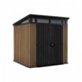 Bezúdržbový plastový zahradní domek Vertical v hnědém provedení je vyroben z jedinečného materiálu Decocoat, který je inspirován moderním vzhledem v imitaci dřeva. Domek má robustní konstrukci s dvojitými stěnami a kovové výztuhy. Vhodný na uschovávání nářadí a zahradních doplňků, ale také na sekačku nebo grill. Vybaven je širokými dvojitými dveřmi to rozměru 140 x 182 cm a podlahou pro náročné použití s nosností 150kg na m2. Zatížení střechy až 150 kg/m2, odolnost vůči větru do 145 km/hod (platí v případě ukotvení). Uživatelé určitě také ocení okno, světlíky a zajišťovací systém.Zahradní domek Vertical 7 x 7, hnědý