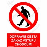 Značky, tabulky a samolepky "Dopravní cesta - zákaz vstupu chodcům" tiskneme na velmi kvalitním materiálu, barvami s vysokou odolností proti otěru a UV záření. Tak, aby provedení značení bylo plně v souladu s Nařízením vlády č. 375/2017 Sb., ČSN ISO 3864 a ČSN ISO 3864-1. Používá se k označení dopravní cesty, kam je z bezpečnostních důvodů vstup chodců zakázán.Zákazové tabulky - Dopravní cesta zákaz vstupu chodcům