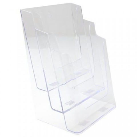 Pultový stojánek pro umístění letáků, reklamních brožurek a jiných propagačních materiálů. Tři kapsy ve stupních za sebou orientované na výšku.Zásobník na letáky Manutan Expert, 3 kapsy na výšku, A4, 2 ks
