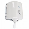 Nástěnný držák na role papírových průmyslových utěrek. Opatřen ozubeným nožem (35 x 5 cm) pro snadné odtrhávání. Nosná tyč (33 cm) je opatřená plastovými kužely pro stabilitu role. Držák je vhodný pro role s maximálním průměrem 26 cm. Ošetřeno práškovou bílou barvou.Držák na průmyslové utěrky Manutan Expert