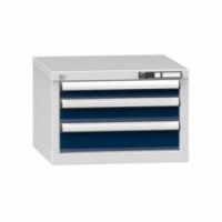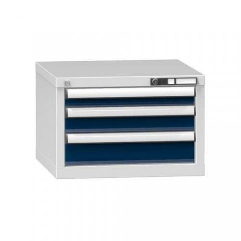 Zásuvková skříň je opatřená mechanismem centrálního zamykání a blokace zásuvek. Zásuvky jsou základním skladovacím prvkem, a proto splňují vysoké požadavky na pevnost a stabilitu. Korpusy zásuvkových skříní tvoří svařenec jednotlivých konstrukčních dílů z kvalitních ocelových plechů. Vnitřní konstrukce korpusů je opatřena perforací po 25 mm. Tuto perforaci využíváme k uchycení vodicích lišt zásuvek, jejich výškovému uspořádání a nakonfigurování požadované zásuvkové sestavy. Přestavování vodicích lišt nebo háčků polic probíhá jednoduše a velice rychle bez použití nástrojů.Zásuvkové skříně ZA4, 578 x 600 x 390 mm