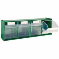 Zásuvkové bloky vhodné pro stohování. Zásuvky jsou průhledné s držákem etiket, sklopné a odnímatelné. Systém uzavírání na klip se zarážkou vpředu nebo vzadu. Možnost usazení do kovového stojanu (není součástí).Zásuvkový modul, 4 výklopné zásuvky