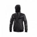 Černá pánská zateplená bunda s kapucí s šedými doplňky. Náprsní a přední kapsy na zip kryté légou. Pohodlnější nošení zajišťuje zakončení rukávů regulovatelnou manžetou a možnost stažení v pase. Odolná proti vodě, lepené švy. Kryté zapínání na zip k bradě.Pánská zimní bunda CXS, černá/šedá