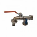 Mosazný ventil Povrch upravený niklováním Dvojitý ventil pro zahradní hadice Připojení 2 x 1/2 a 3/4Ventil zahradní, s adaptérem, ventil 2 x 1/2" + 3/4" koncovka