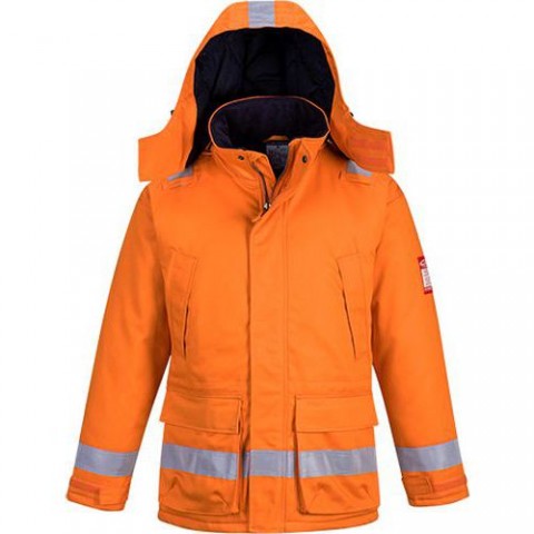 Stejné vlastnosti materiálu jako u FR50. Splňuje všechny potřebné standardy včetně svařování. Trojité šité švy reflexní pruhy krytý dvoucestný zip náprsní kapsy s patkou nastavitelný vnitřní systém v pase odepínací kapuce. Mosazný zip CE certifikace Nehořlavá reflexní páska Podšívka z nehořlavé bavlny Vnitřní náprsní kapsa Dolní přední kapsy se zapínáním na suchý zip Smyčka na radiostanici Dvě náprsní kapsy na druky UPF 50+ Nastavitelné manžety na suchý zip Antistatické Stahování pase 5 kapes Dvoucestný zip Nehořlavost Ochrana proti sálavému konvekčnímu a kontaktnímu teplu Celozateplené provedení Třída 2 svařovací ochrany CE-KAT III Odepínací kapuce Nová barvaZimní bunda FR Anti-Static, oranžová